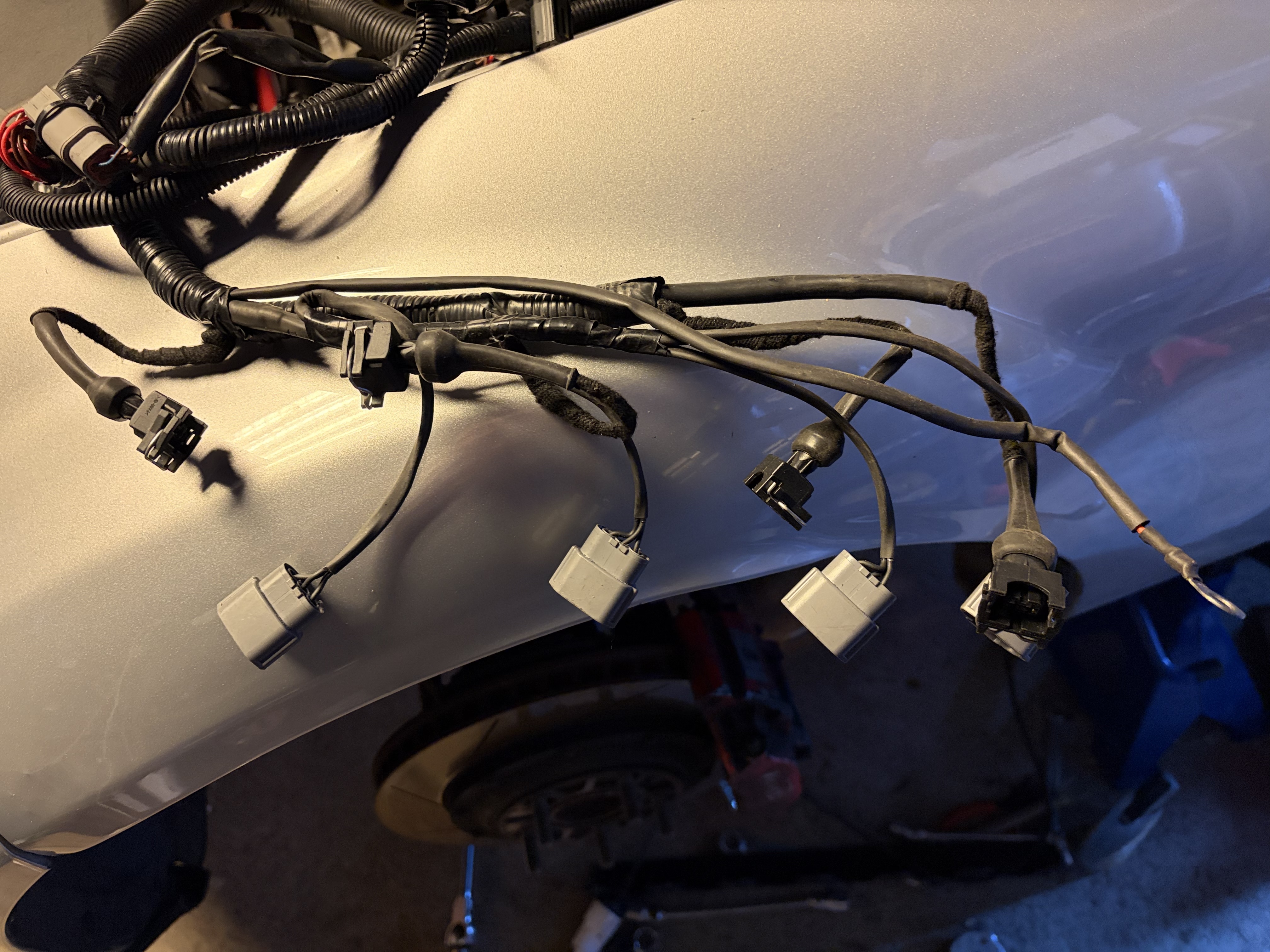 The part of the OEM loom that goes to the engine all terminates to one of the OEM ECU plugs and can be removed without any cutting which is good for reversibility. Wiring is work in progress until all sensors and the 8HP stuff is finalized. Will replace some of the plastic tubing with more OEM like windings.