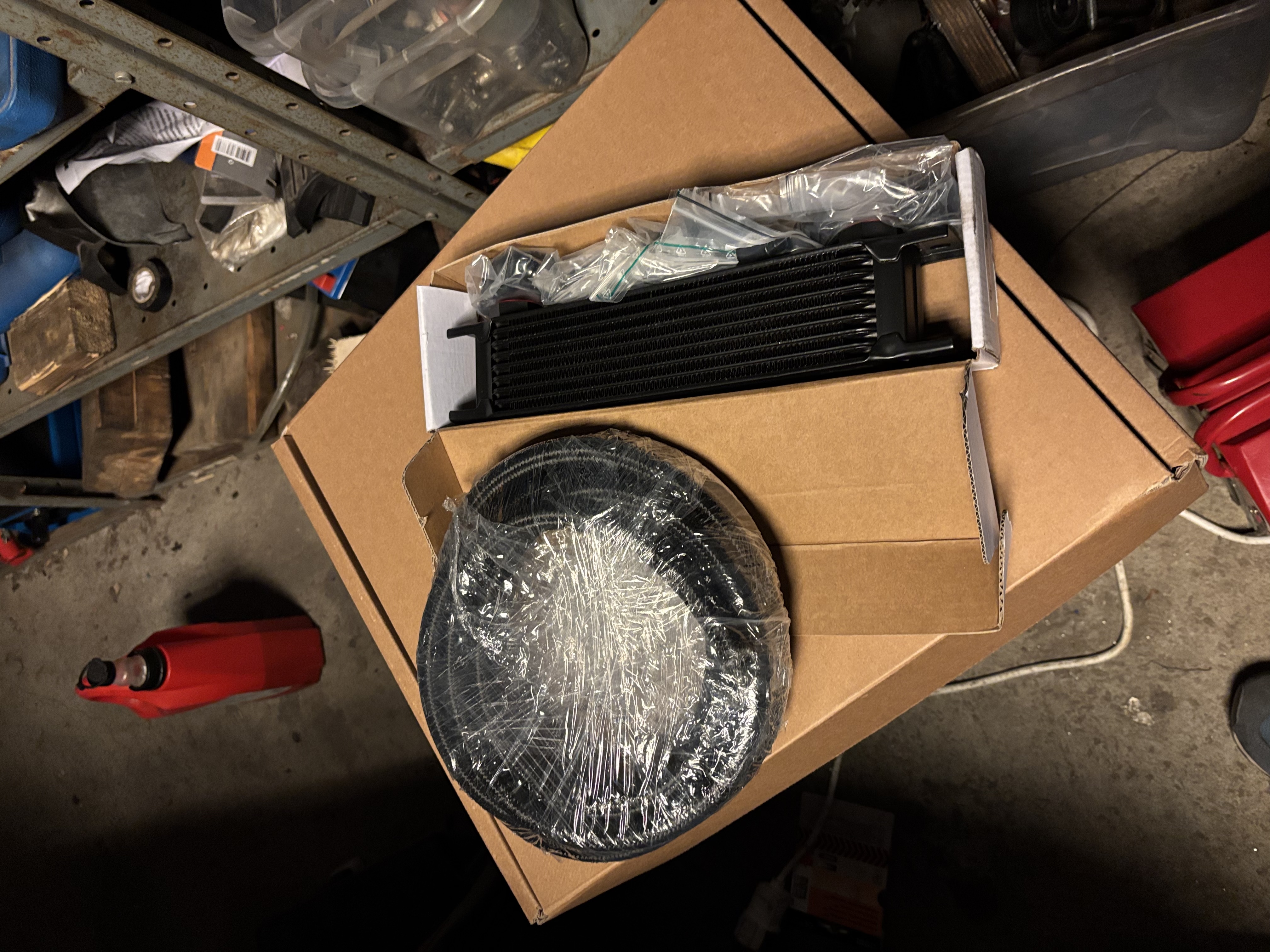 Transmission cooler and adapter. I opted for a smaller cooler which I will try to mount under the car.