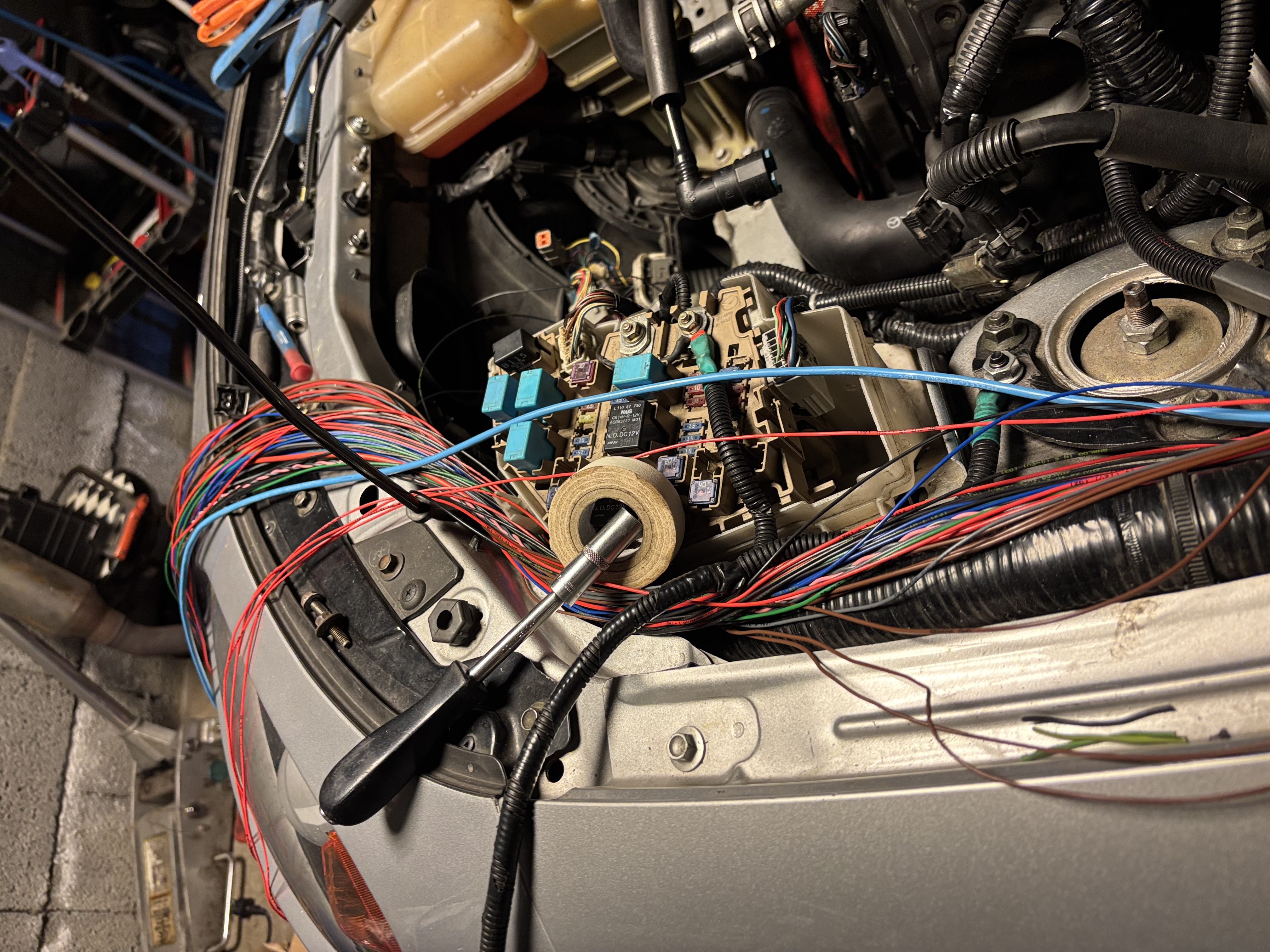 If I was to do it again I would route the cables directly into the cold side of the transmission tunnel instead and have the ECU mounted behind the passenger seat.